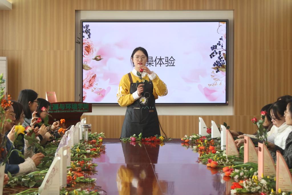 3月8日下午,我院在主楼315会议室举办艺术插花活动,邀请我院女性教师参与体验,共同庆祝妇女节。由买球赛的app官网愈见花艺工作室成员邓楠给老师们讲解插花相关知识与实操步骤。