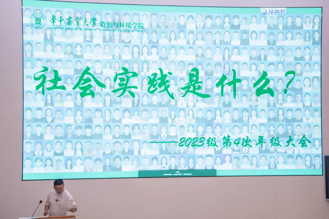 本次大会重点为对暑期社会实践工作进行动员。韩峥介绍,社会实践是本科培养方案中的必修环节,2023级全体学生均需参与并完成考核。他从实践意义、实施流程及注意事项三方面展开讲解。“学校组织展开2025年大学生志愿者暑期社会实践活动,是为了引导青年学生在社会课堂中见世面、悟道理、长才干,做有理想、敢担当、能吃苦、肯奋斗的新时代好青年。”实践流程包括选题策划、实践展开与宣传、总结答辩三个阶段,要求团队或个人在实践过程中做好记录,形成高质量成果。最后他提醒同学们注意人身安全,提前与实践单位做好沟通,并留存相关证明材料。