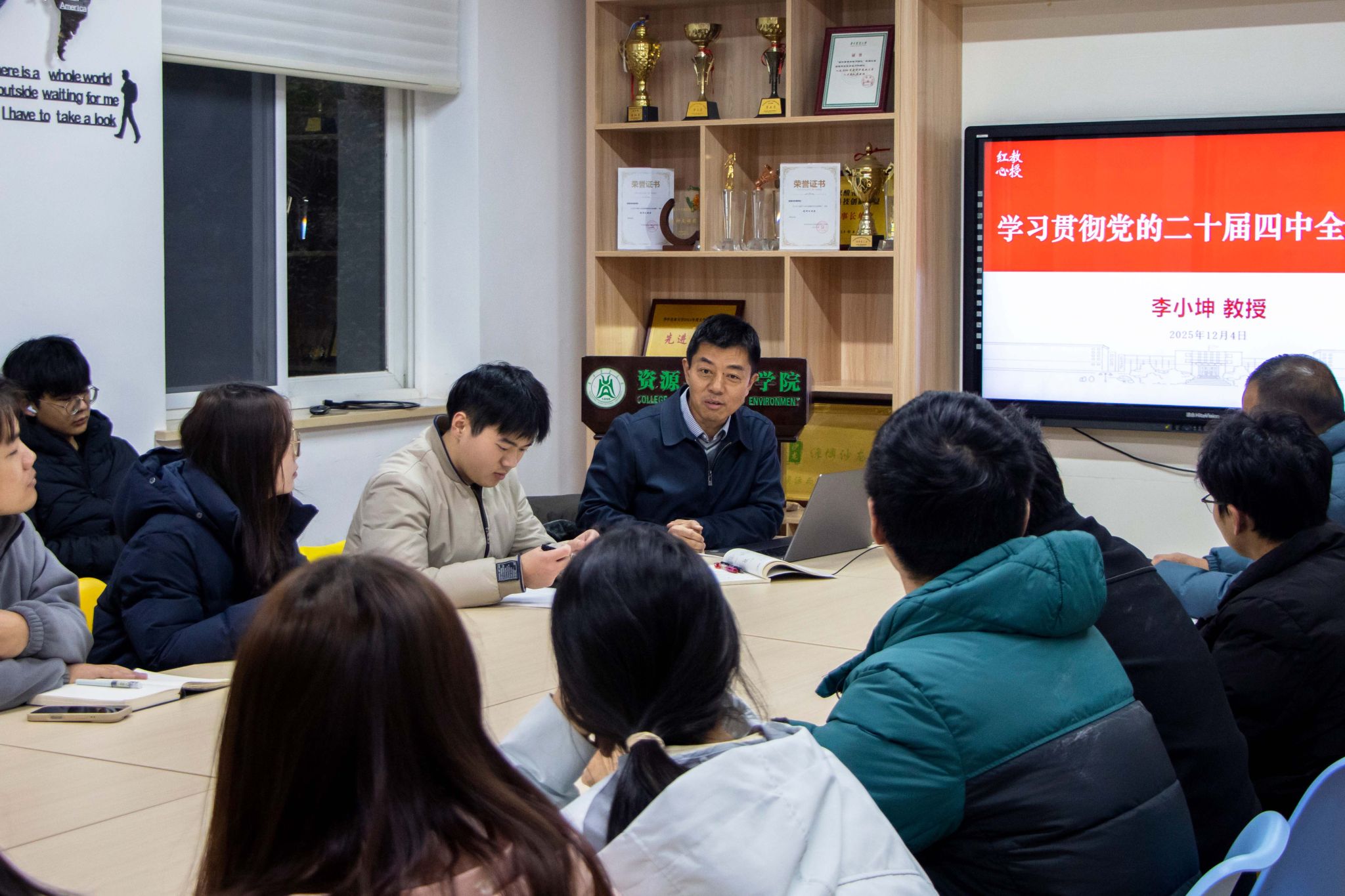 12月4日下午,我院在主楼240会议室开展教授红心工作室交流活动。学院教授李小坤老师应邀作交流分享,围绕党的二十届四中全会精神,聚焦“三农”领域发展进行解读。会议由辅导员艾力·斯迪克主持,学院部分本科生、研究生代表参加。