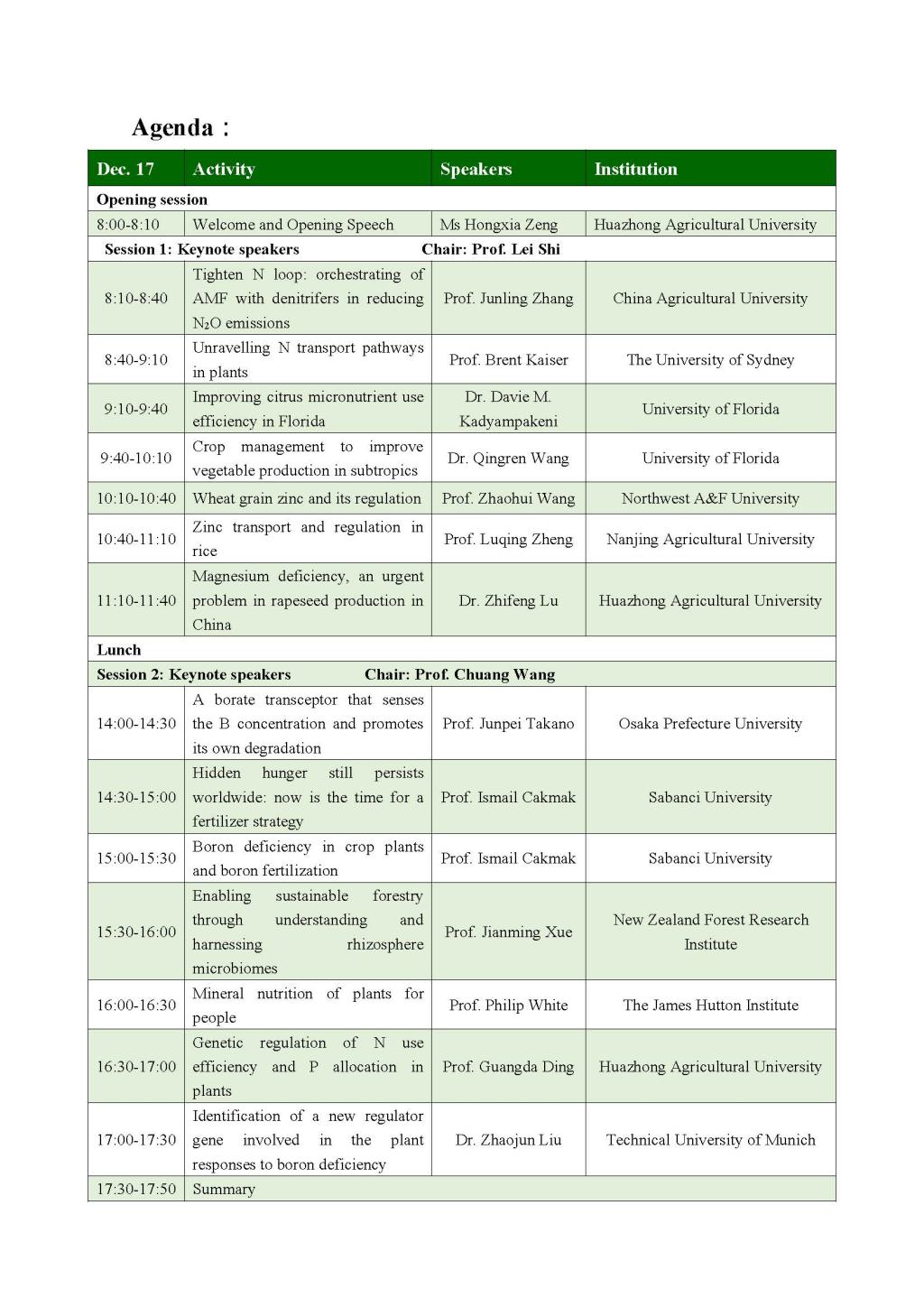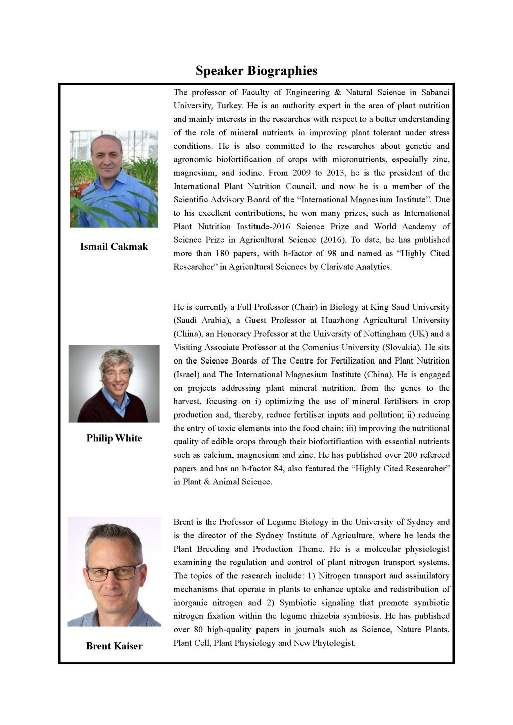 植物营养、作物生产与食品安全国际研讨会会议手册