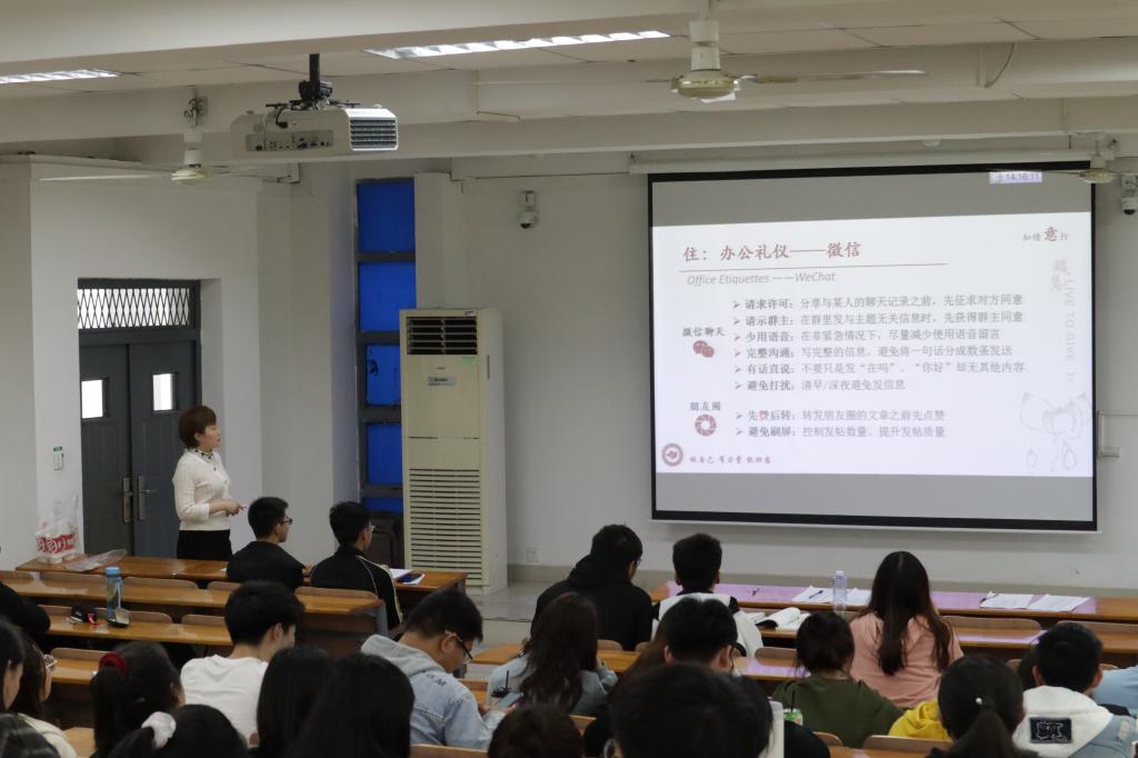 为帮助同学们更好地完成从校园到职场的转变,3月27日下午,由我院生涯规划与职业发展部主办的就业指导系列讲座之“职场礼仪”指导讲座于第三教学楼C205教室举办。讲座邀请了企业EAP高级执行师、职慧志愿讲师刘司玥女士担任主讲人。